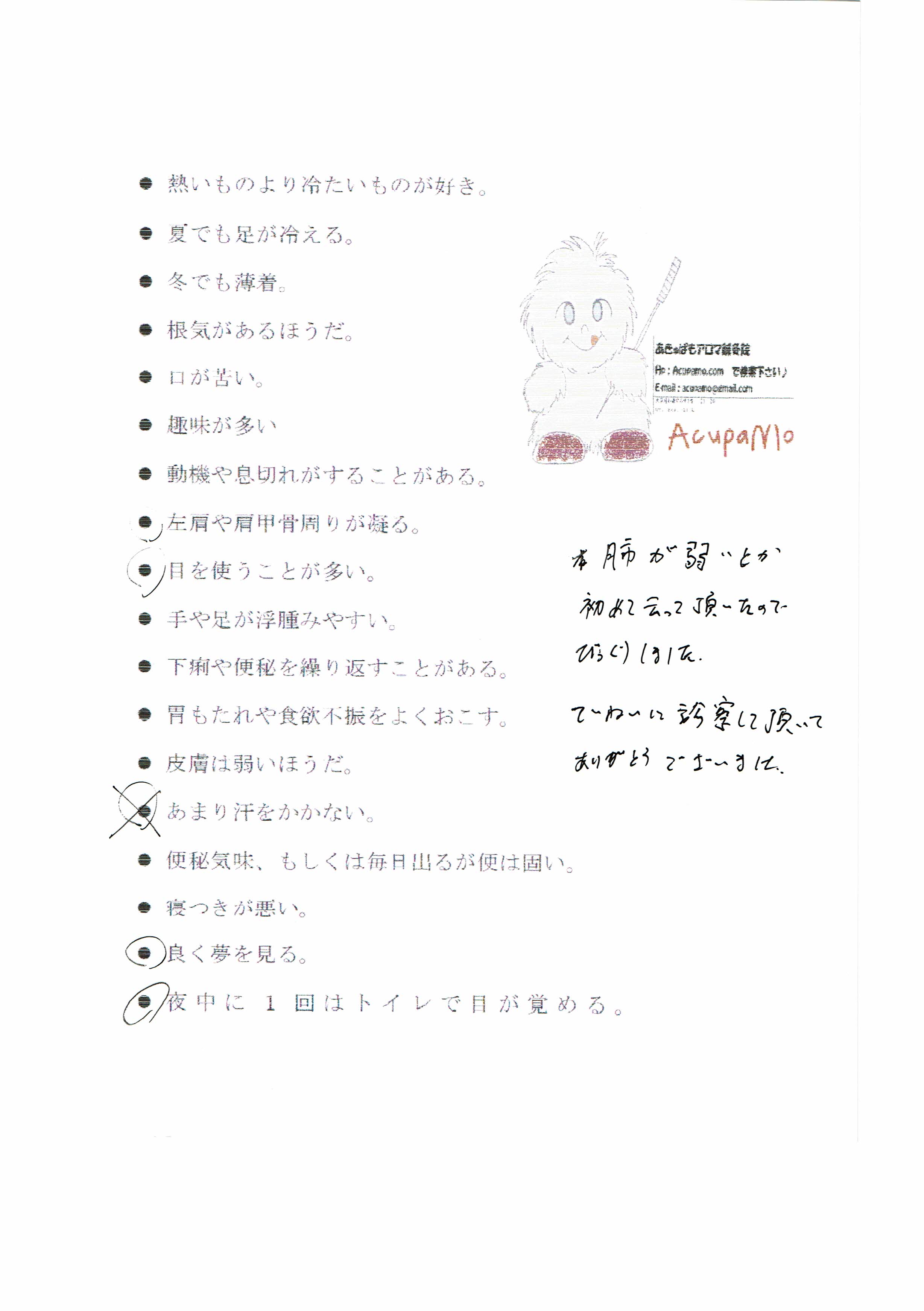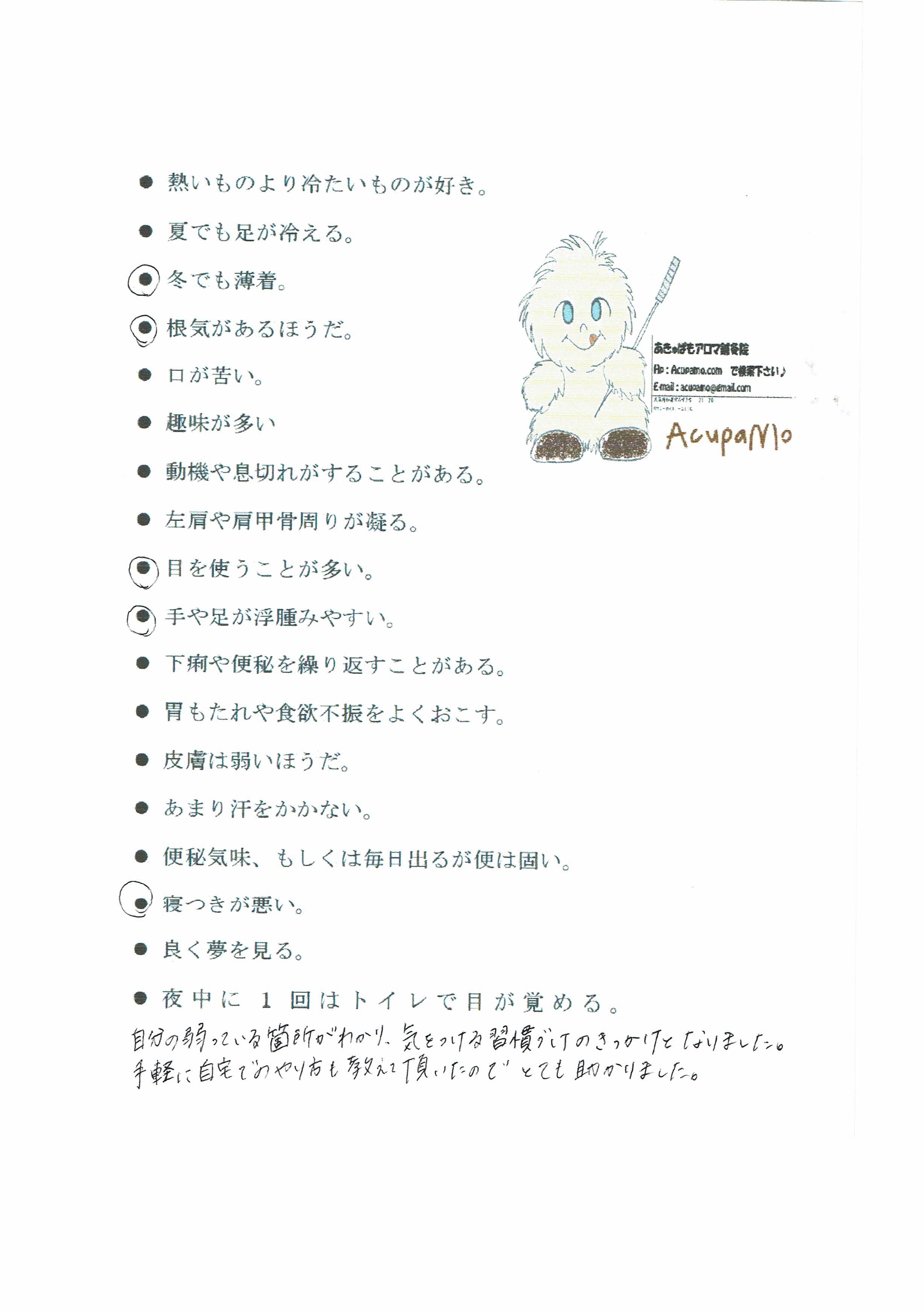 体の悪い場所は自分で気付きにくいので話を伺えて良かったです。