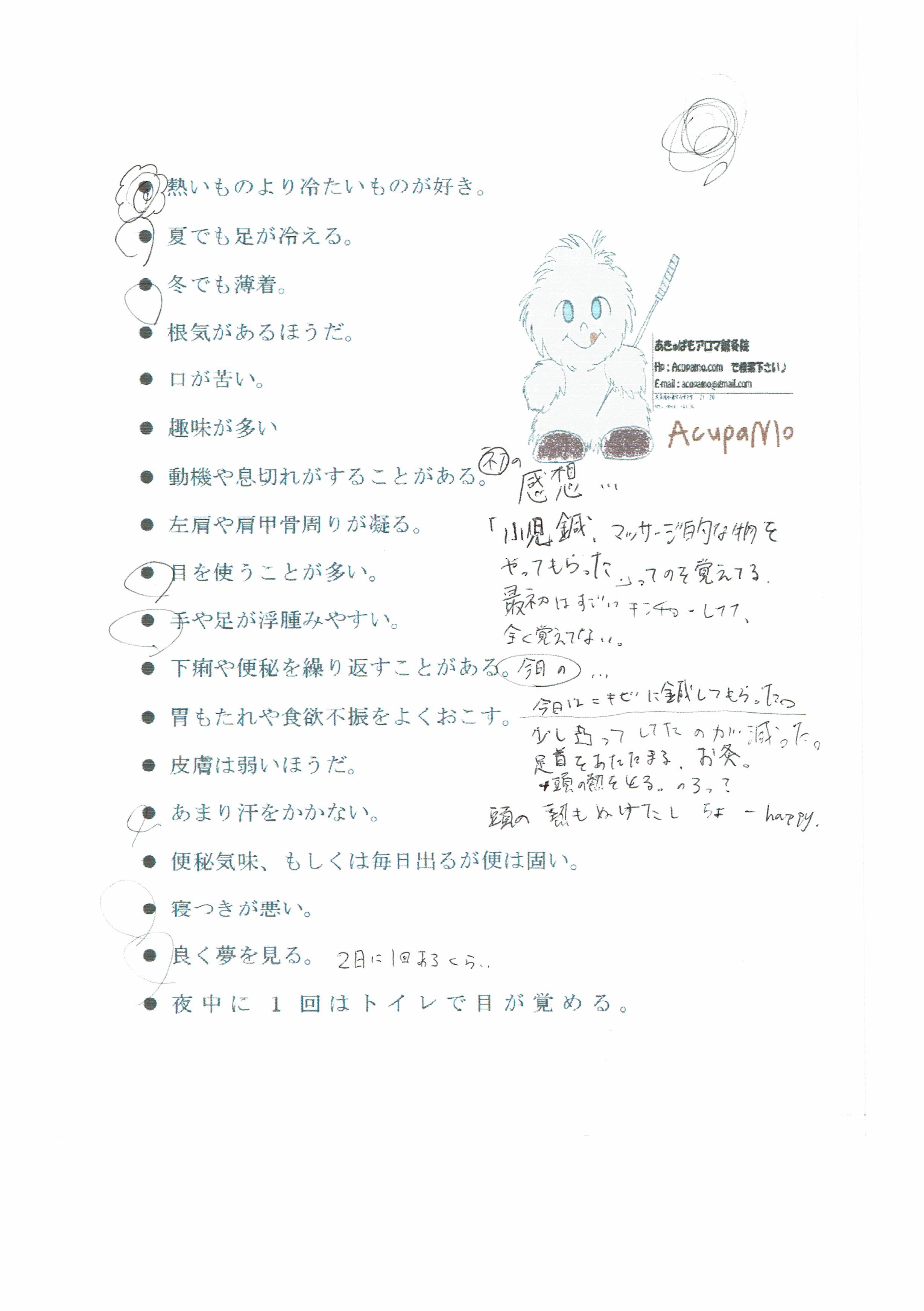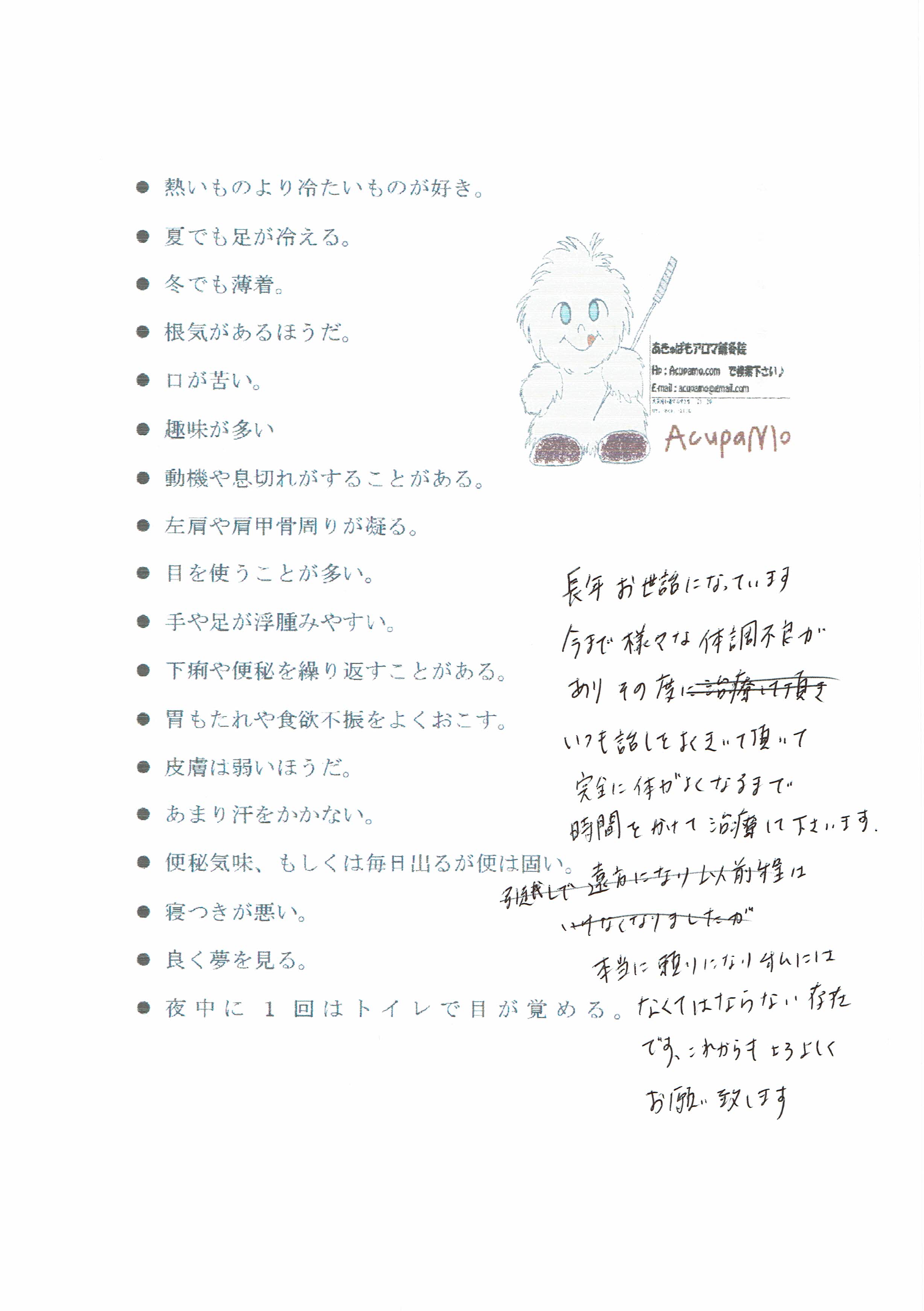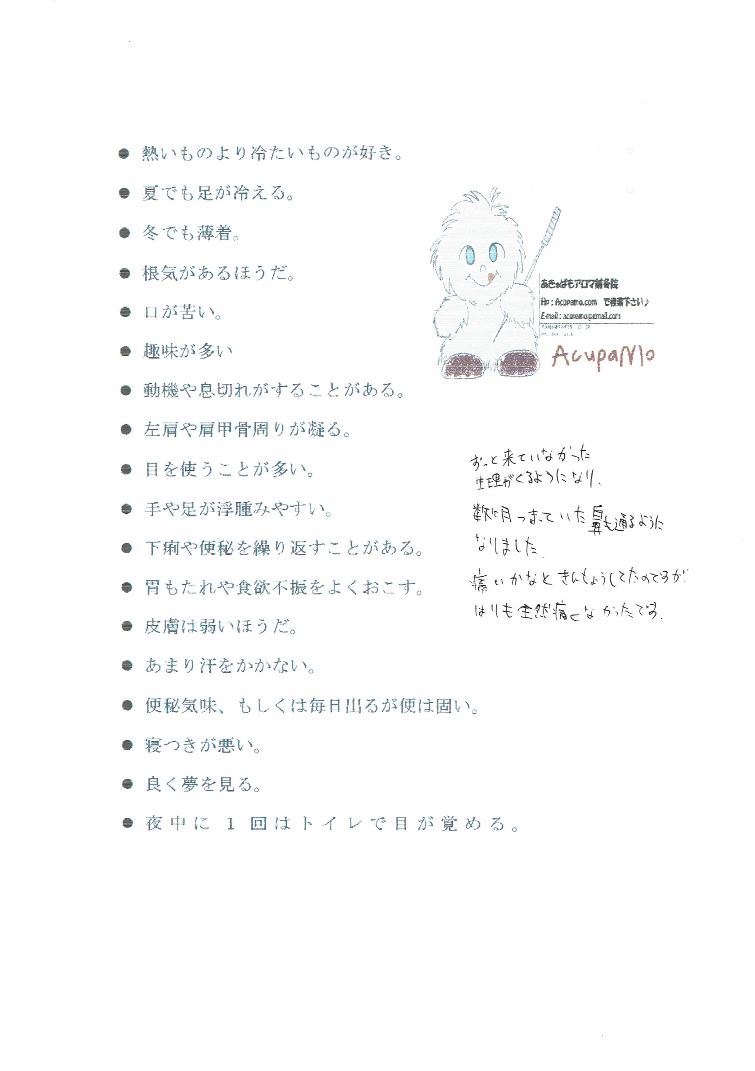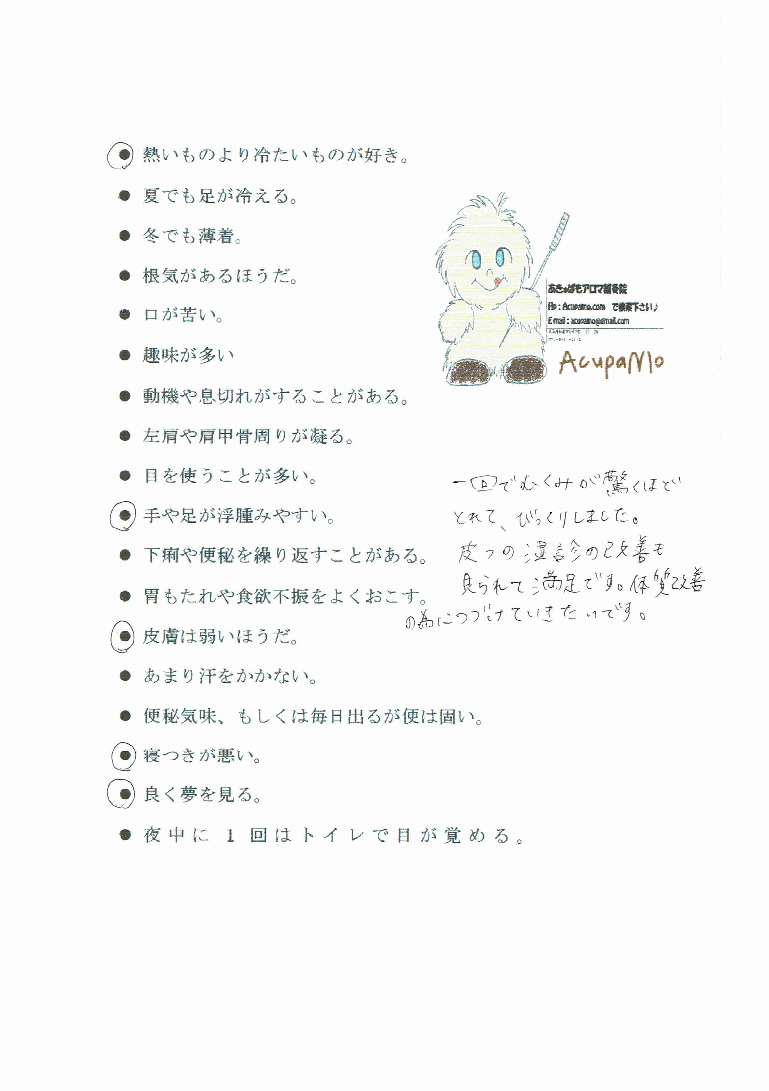 ・調子がよくなり鍼灸が好きになった患者様