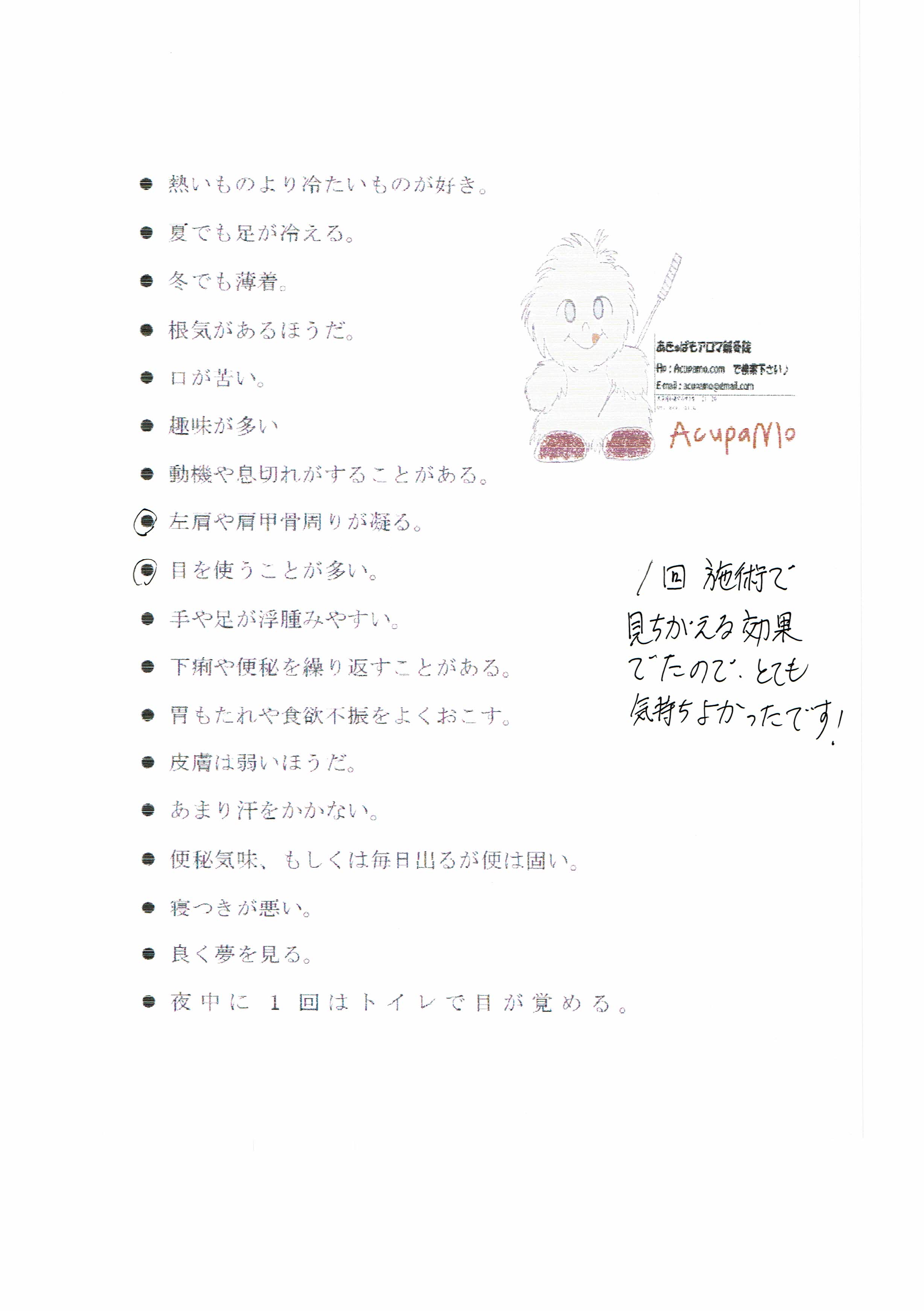 肩がらくになり夢見なくなりました。痛くなかった、よかった。ありがとうございました。